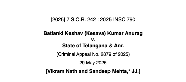 (Criminal Appeal No. 2879 of 2025), delivered on 29 May 20251.